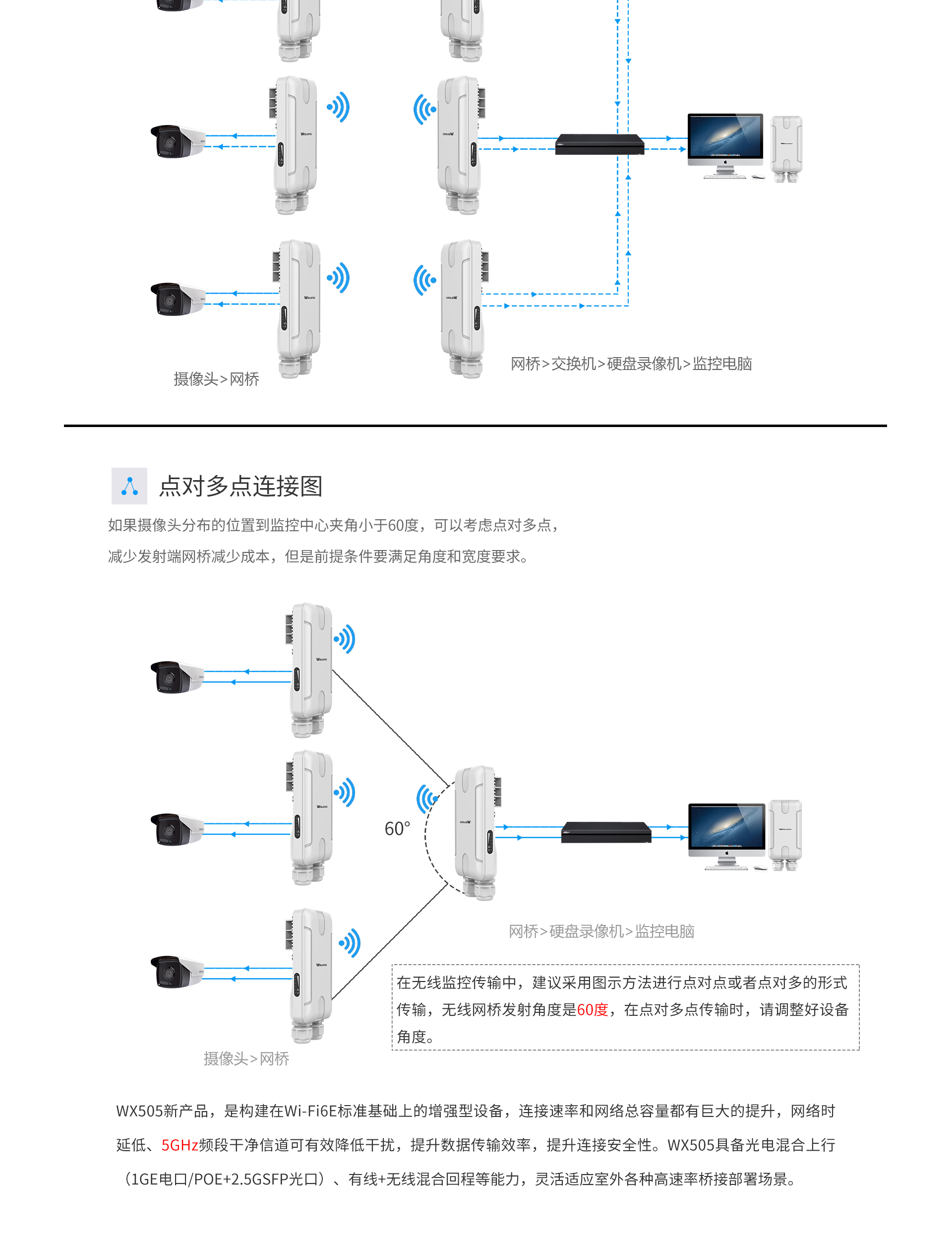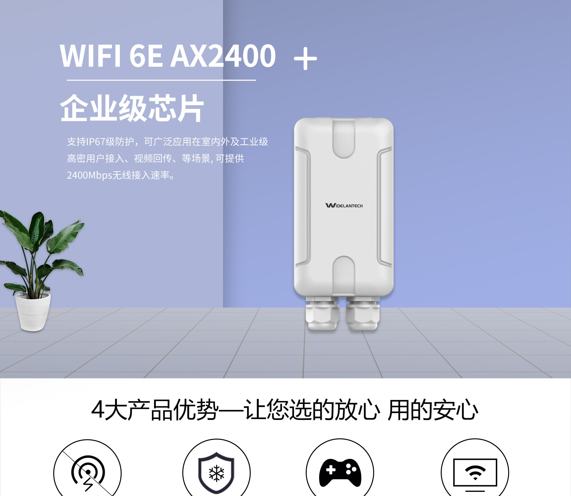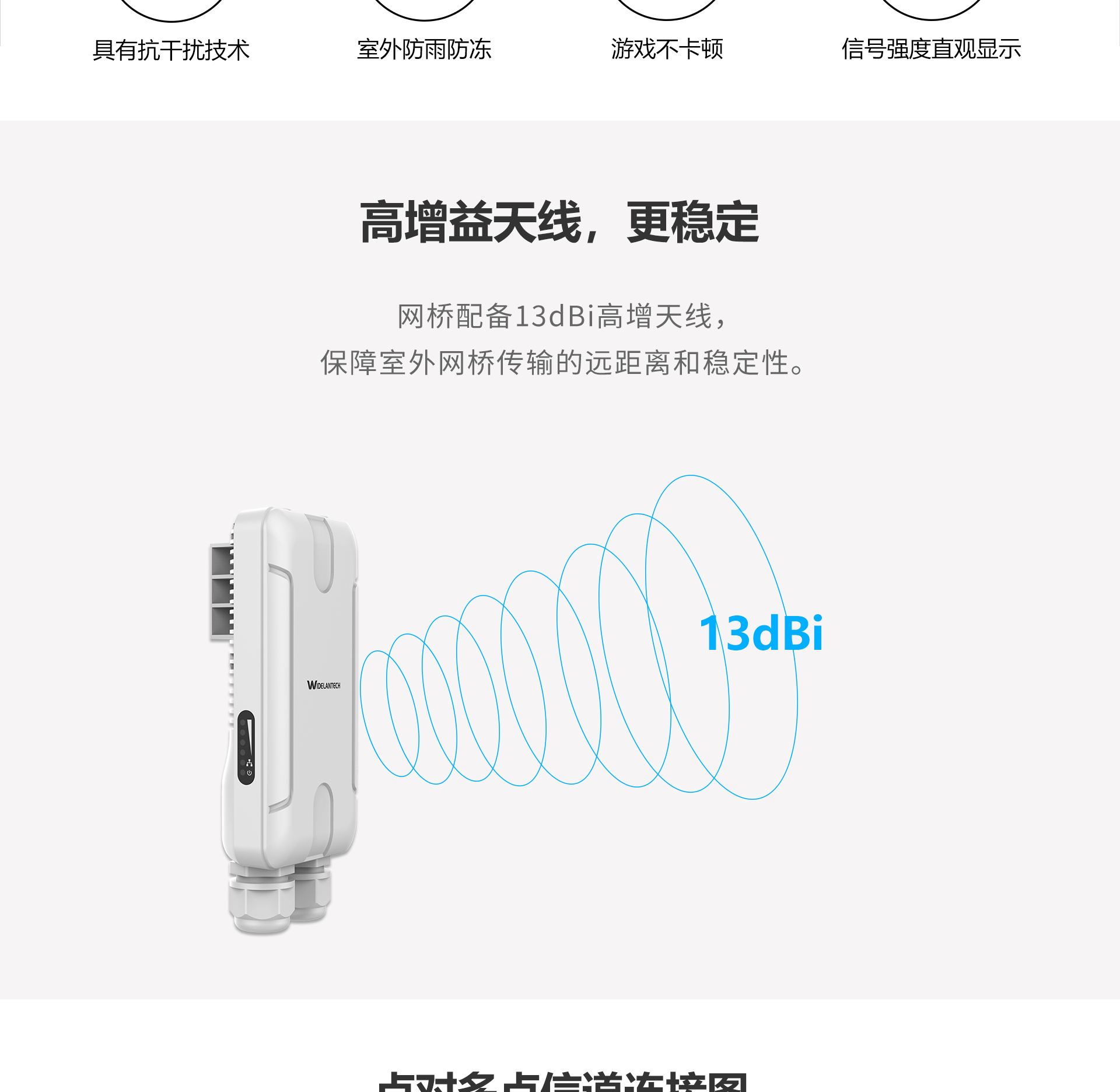 新一代Wi-Fi 6技术,理论支持最高无线传输速率可达2400Mbps,采用高性能ARM四核CPU,2.5G SFP光口,上网更高速,直连更便捷,内置高增益13dBi双极化天线,提供高性能无线,纯净5GHz频段,干扰更少,支持160MHz频宽,无线传输距离达5千米,专业室外壳体设计,适应各种恶劣环境,全千兆端口,更好发挥无线性能,支持PoE网线供电,无需外接电源,抱杆/壁挂安装,维护简便。